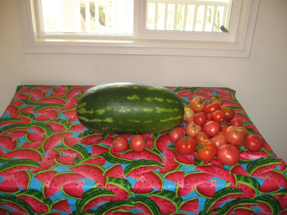 Tomatoes for scale. Just a melon that meets the standards for it's type, quite nicely... yeah, that makes me happy :).