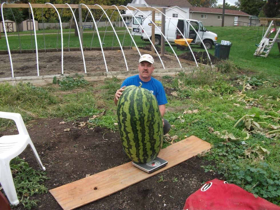 Harvested Melons Weighed 192 on Bath scale took to salvage yard this am she weighed 191 lbs My personal best beating my 183 from 1998 the other 2 went 136lbs and 126lbs the big one ott was 176lbs She was 8% over chart 255 mitchells GREAT SEEDS