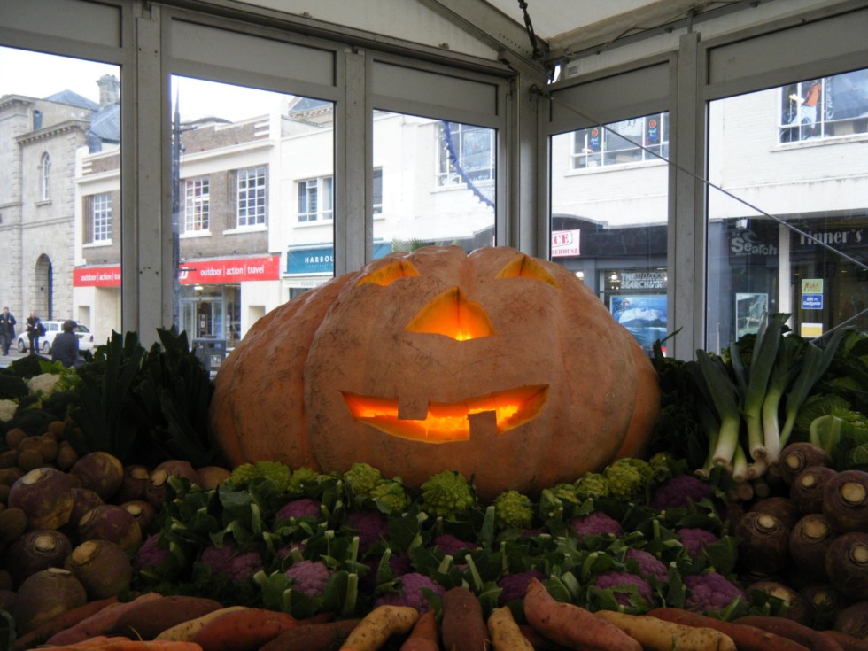 Around the pumpkin are some more unusual veg to give it a haloween look, there are locally grown sweet potatoes, purple cauli and right in front of the pumpkin are some romanesco.