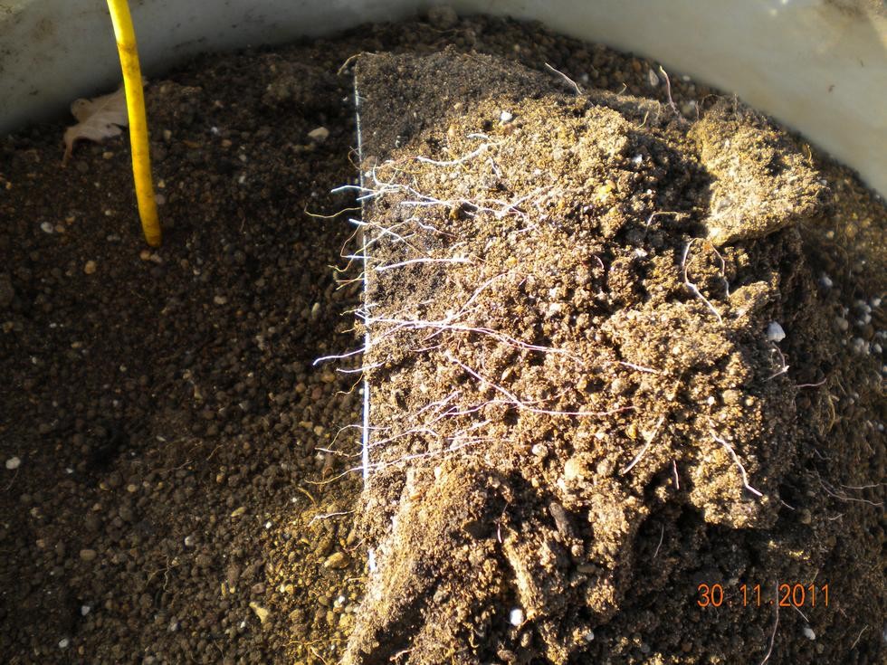 Pink root, emptying the Exhibition Leek and Onion barrels and finding the soil full of this Fusarium type disease, instead of clean white roots they are pink. The only cure is to dispose of all the soil and try sterilizing the containers. It seems to appear when I grow in the same soil for several years.