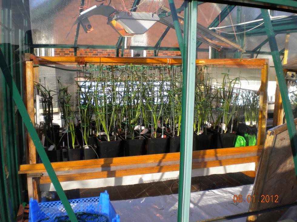 Onions are snug inside the greenhouse cabinet, however no severe frosts so far, only gales.