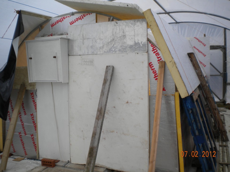 Very cold weather, -15c forecast for tonight and tomorrow, tried to increase the Onion tunnel insulation by covering with available boards and fleece - not the prettiest site but will help the heating.