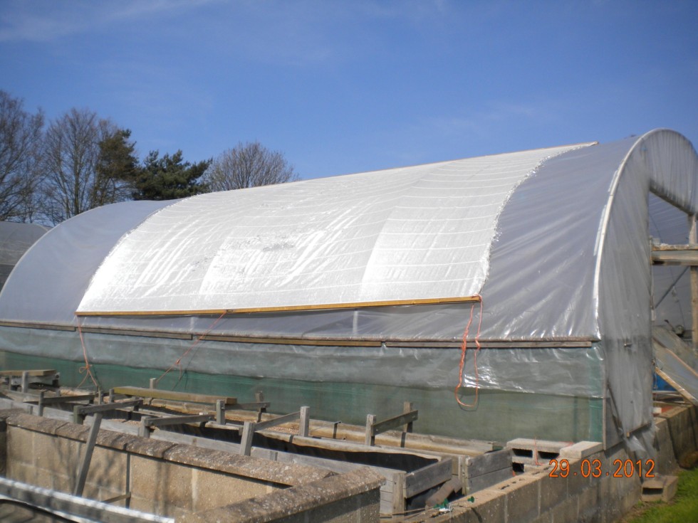 It is so hot by day that I am having to shade the Onion tunnel which is still covered by the larger outer one. We have never had such a long spell of quite sunny weather in March.