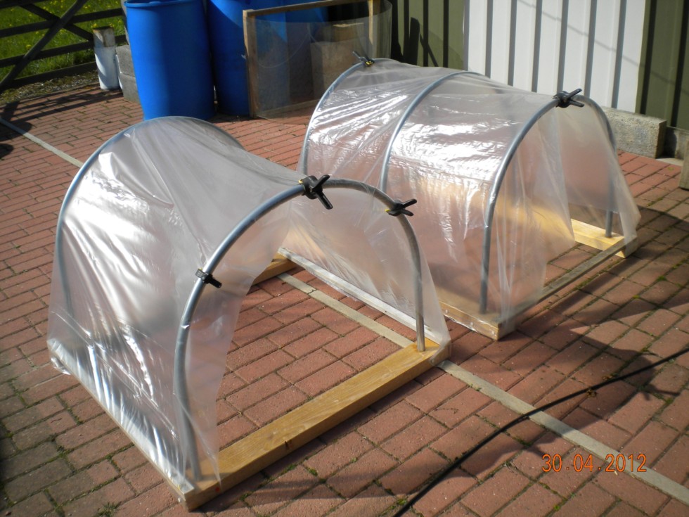 While it has been raining I have been trying to make a few simple covers for planting out Field Pumpkins and Marrows. I have six made and they are all different.