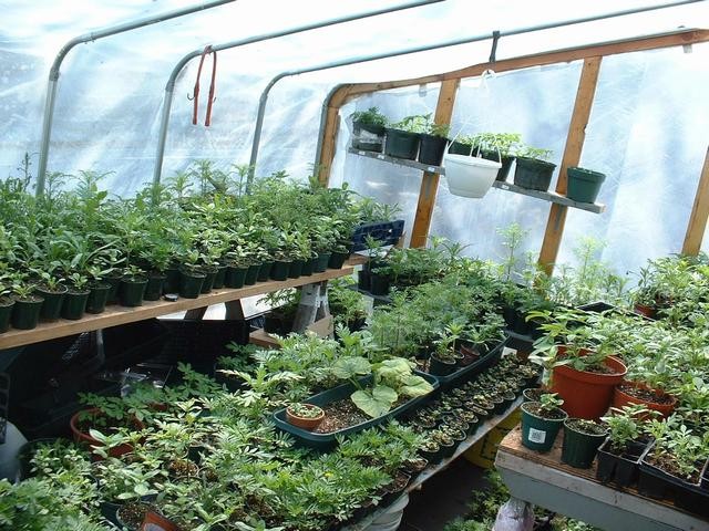 Look closely in our greenhouse & you'll see the 845 Bobier cutting that (barely) survived winter here. Since we have only 2 heated cloches, I'll wait until mid-May to move this one out to the patch. By then many of these 1500 anuals & perennials will be in bloom & sold. I might be even be able to move around in here again. There are another 500 or so outside.