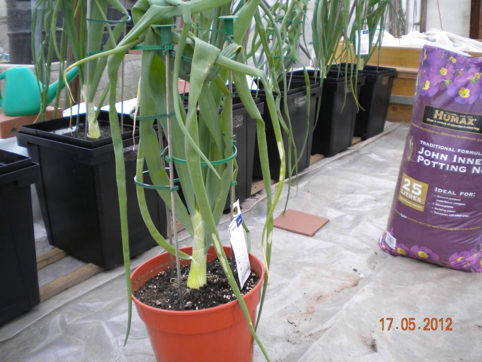 Late sown Onions planted up today into 27litre pots. Will try growing these on in the greenhouse, but pots may prove to small unless I shade and feed later in the season.
