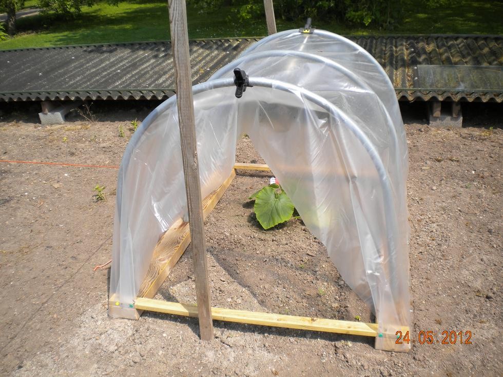 Marrows and Field Pumpkins planted out. Used my new cloches but soon found it was to hot inside, so removing during the day if winds not to strong.