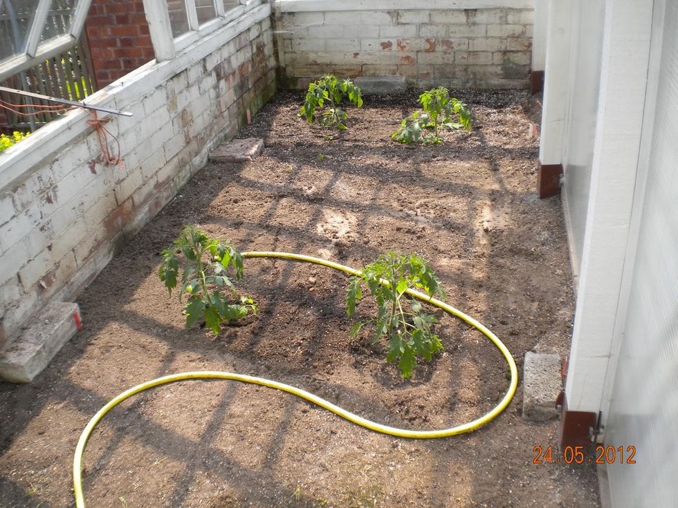 Planted giant Tomatoes into my old greenhouse, allowing plenty of room this year for some to see if it will help. First trusses will be removed, may run with the third and fourth.