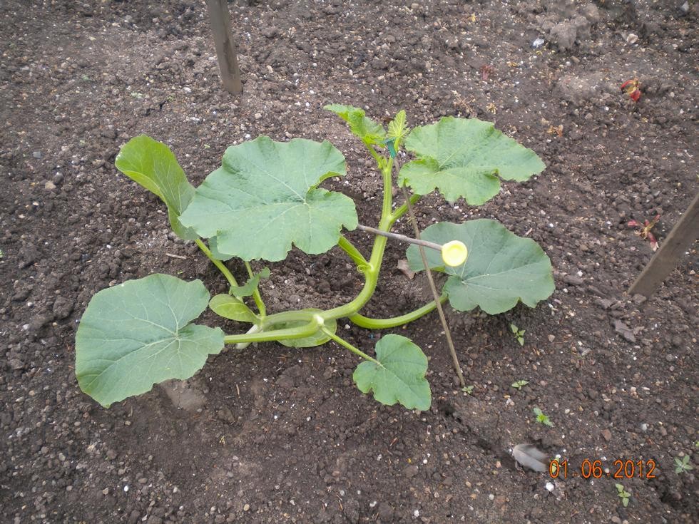 Marrows were planted out in a rush when the hot weather started, they are now growing away well and I am starting to direct the main stem before partly covering with soil.