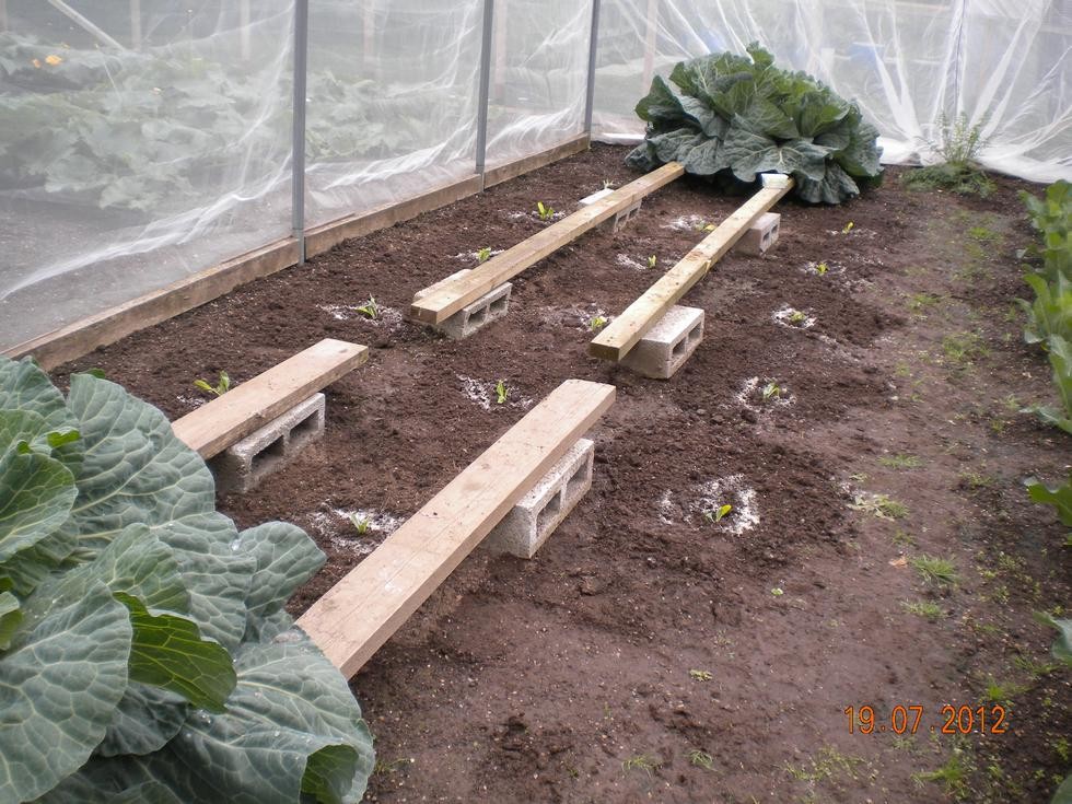 Removed the three Cabbage which had run to seed, prepared the ground and planted two varieties of autumn Cauliflower. (thanks for the plants David) Rained all day so no need to water them in,lol.