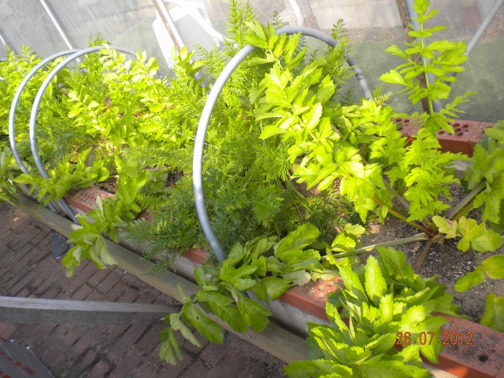 Carrot and Parsnip - These are outside in my Enviromesh tunnel, clean and healthy but pale foliage - may be the excessive rain/lack of light, will start to feed with high potash.