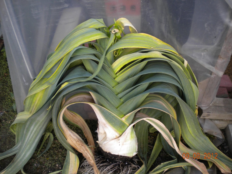 The shredded giant leek has collapsed with soft rot, so now removed. It did have a hole in the root plate as predicted by the NPLS visiters. The spidermite damage shows up white under the leaves.