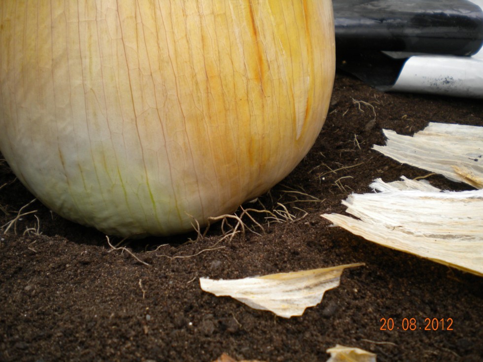 Heavy Onion shows are starting so cleaned around most of the plants removing dead/soft skins. Broke a few roots in the process, thought I had planted them on the surface but seem to have settled down 35mm(1.5") into the compost. This will allow for some drying out before lifting.