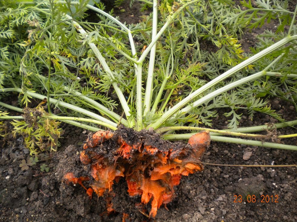 Found one of my giant Carrots collapsed, little wonder, completly rotten underneath. Suspect it was too wet in the outside compost bed. Will not water any of the others lol.