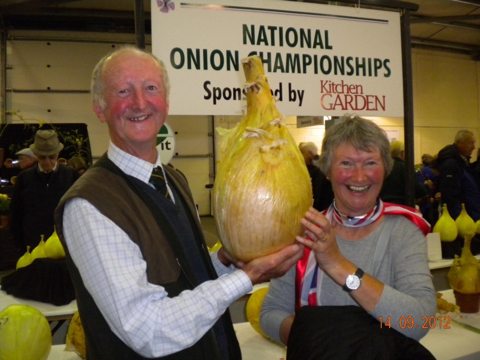 Sucessful at the Harrogate heavy onion show, New World Record 8.195kg (18lb 1oz) Weighed around 19.3lb with top and roots on when first lifted. Really sound bulb, very pleased with it after a poor growing season generally.