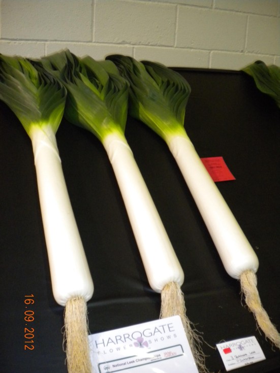 Also at Harrogate show I won the class for three long leeks, taken me many years to do this, think the late season helped. The same weekend we travelled north to the National Pot Leek Soc. show, All four classes were won by Peter Holden - some achievement.