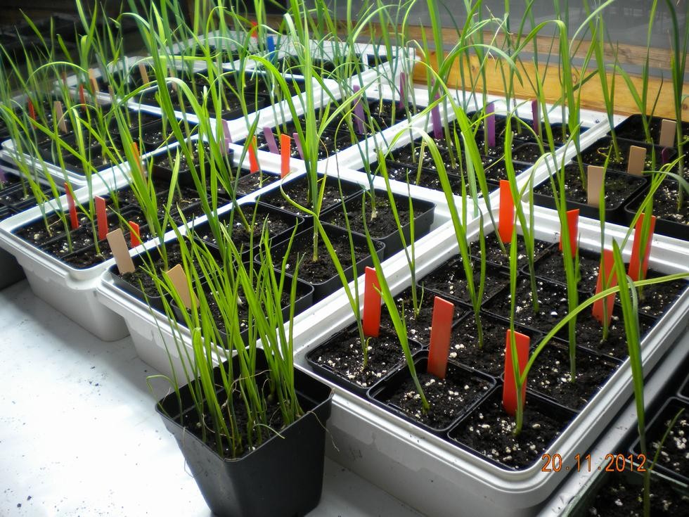 The two varieties of Leeks (Yorkshire giant and Pendal) are growing away now under a bank of T5 lights, which are on 8.5hrs during the day. Trying to keep the temp.in my greenhouse cabinet around 10c (50f).