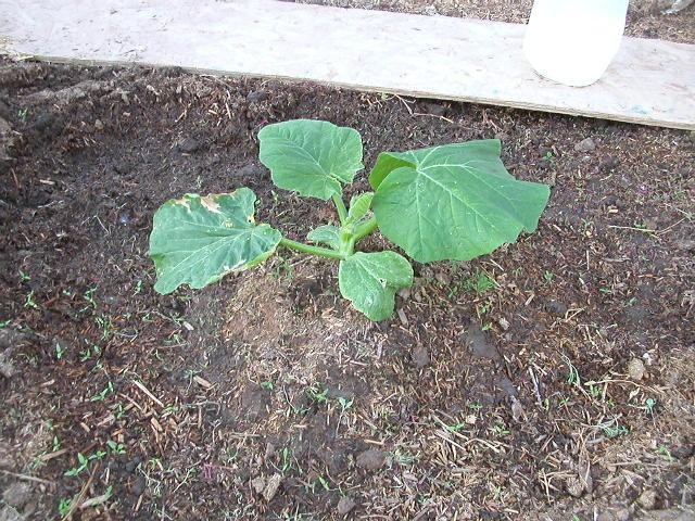 my secret plant. The first true leaf, on the left, was stunted and the 4th leaf was broken off and removed. The plant is still doing OK. It was started later than the other plants.