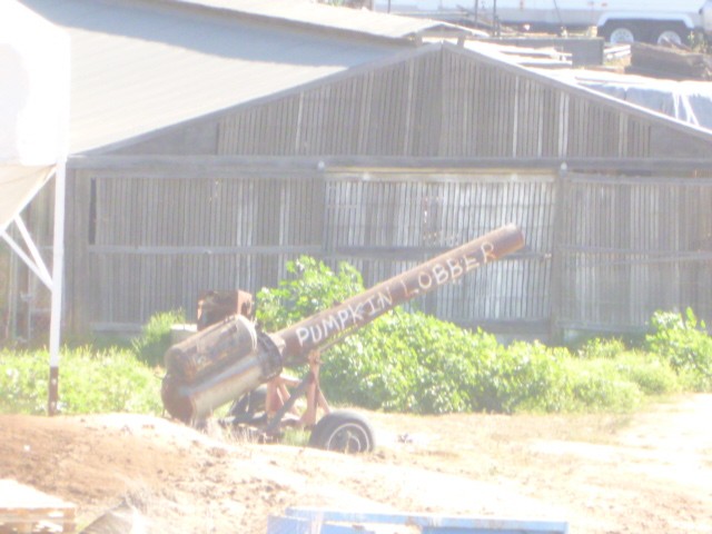 huge pumpkin cannon at the farm, Joshua loves pumpkin cannons!