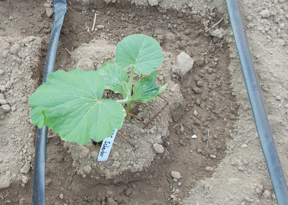 This is the rate of development that I want to see which is very similar to the 2009 Wallace I grew last year. To make watering easier while the plant is small I dug a shallow mote to hold the water in the area around the plant. I am trying to keep the surface as dry as possible to keep the amount of weeds down.