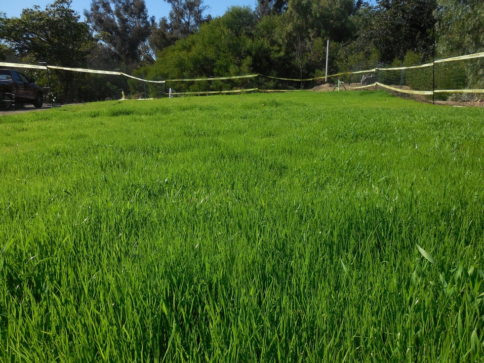 This is the other patch. It has been very easy. There has been no real disease pressure so a couple different types of rye were planted. I let it grow then mow it down. Sprinklers on a couple times a week and that's it.