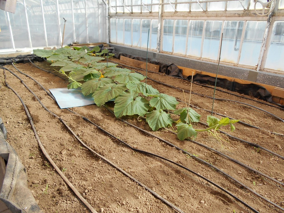 Overall the coloration of the plant is great and the leaf stalks are nice and low to the ground. There are a few secondary vines but I would like to see a few more of them, but they are slowly coming along, but I have to remember my main goal is a pumpkin and not just leaves. The square of mill fabric marks the site of the first pollination that I did on this plant on 2/2/14 and as of today it still looks great and it growing.