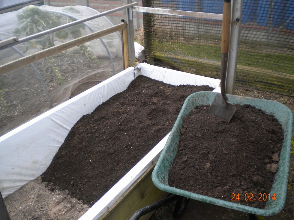 Started to refill my leek raised beds using ex. Onion compost which has been weathered outside. A dry week and strong winds has made the soil workable. We have not had a air frost this month - that must be a record for this area in Feb.