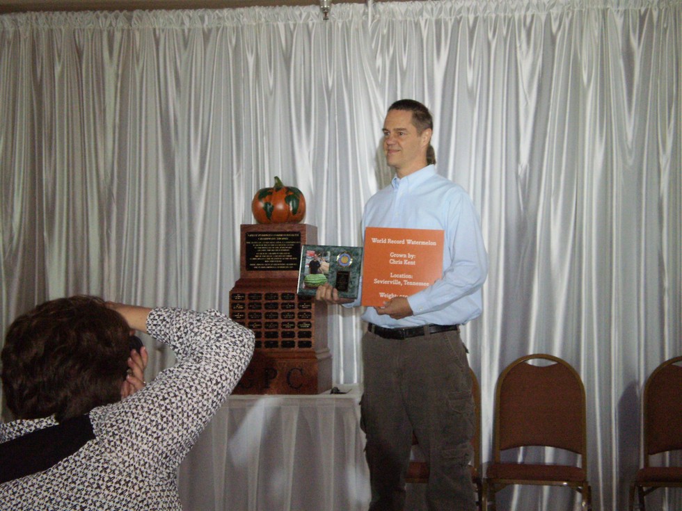 Chris Kent Receiving award for largest watermelon and New World Record Watermelon
