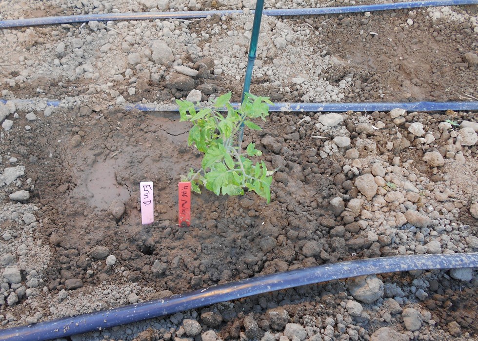 The tomato plants have been selected by the students so they can monitor the growth and changes during the semester. Overall the plants have improved slowly since their spray damage and now that they are in the Pumpkin Grow Room the temperature has been increased from the propagation chamber and they have been transplanted into the field soil.