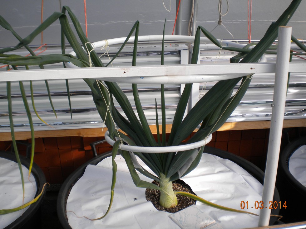 Second tunnel plants are smaller but look healthy and are growing well. 125mm high x 200mm circ. All are now supported by two hoops, but need constant attention to keep the leaves supported.