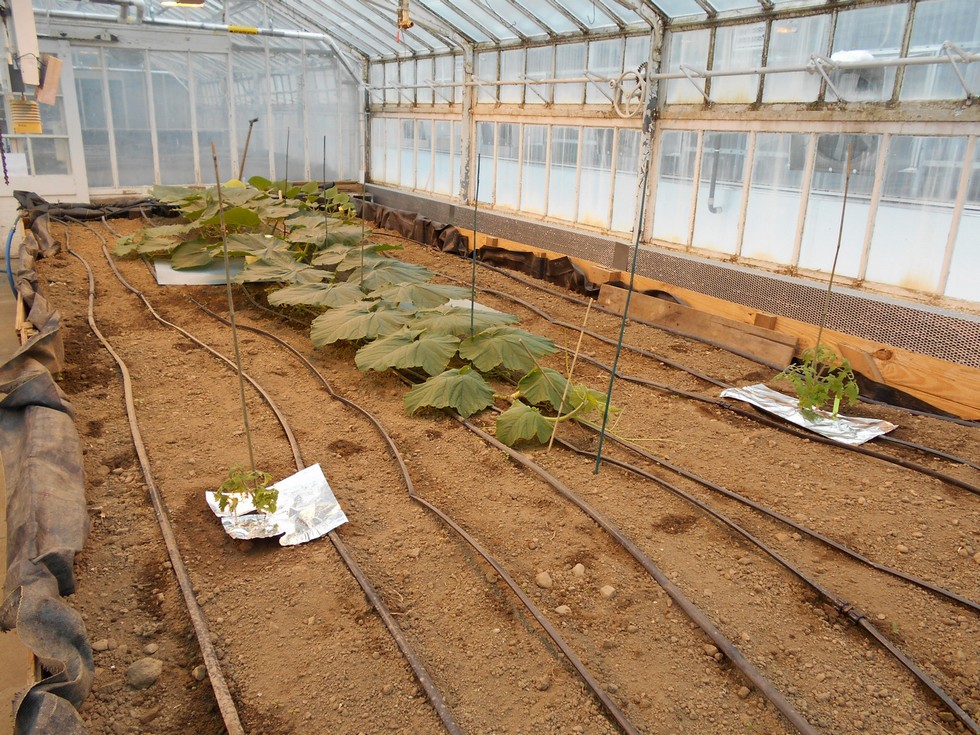 This shows the 335 Scherber �11 plant with both �Dustyn� (on the right) and �Lori� (on the left) tomato plants. I have been doing a lot of weeding with the loop or stirrup hoe that you can see in the background. Nothing like weeding in February;-) Slowly things are coming together in this raised bed.