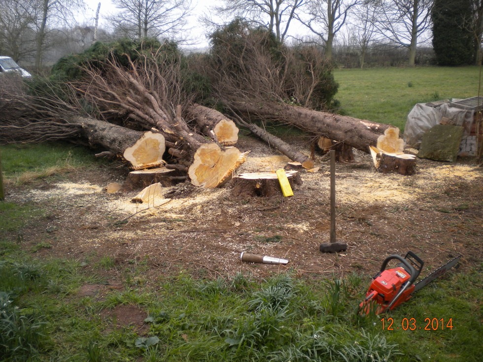 Amazing what a chain saw can do in 60mins (if the operator knows what he is doing) this will let more light into the garden and prevent any gale damage to the house. Only planted these Leylandii conifers 30 years ago, never expected I would have to pay for removal. Tallest was 20meters high.