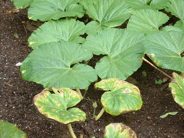 Here is another shot of damaged leaves. This one isn't fertilizer though. This is Daconil that was sprayed at the low rate early in the morning. Why all this damage? It got warm rather quickly. People wonder why I hate Daconil. This is why. By the time the grower realized what was going on & got water on the plant, these leaves were already toast. Notice that the new growth visible past the damaged leaves is perfectly normal? Because those leaves weren't treated being as the were very young & this isn't a disease.