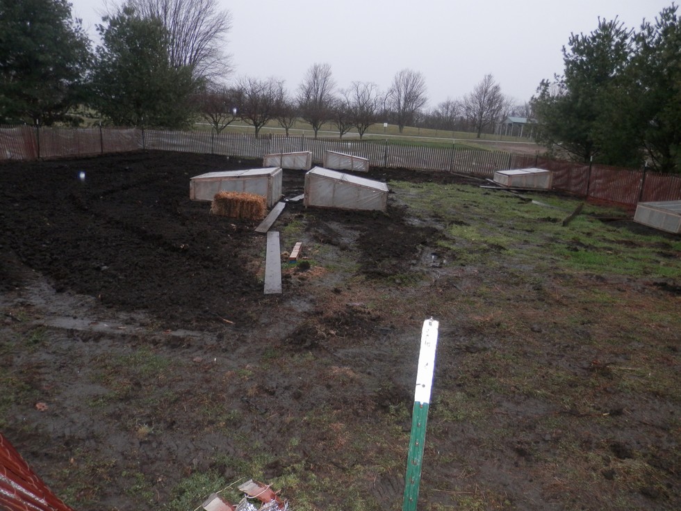 was a nice day out (until about an hours ago when it started raining. Got quite a bit done. Got the fence up and 2 backup huts out.