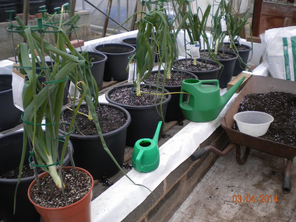 Started planting out my Exhibition Onions into the large cold greenhouse, weather foggy /grey/mild but overnight temps are similar so ideal conditions for early April. The plant roots in their 225mm pots had only just filled the compost but able to move without breaking up the root ball. They can now grow on in their final 35 litre pots.