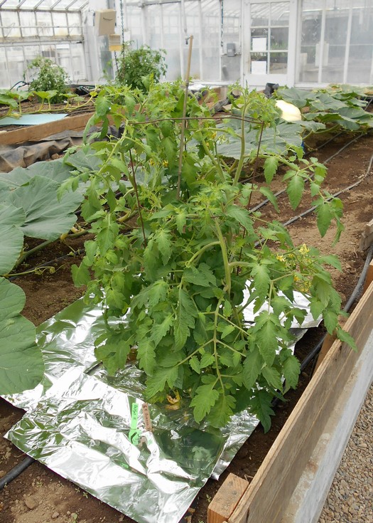 This plant is experiencing the exponential growth phase. It has reached the top of the cage and is still growing. There are also some promising flower clusters that are present on the plant.