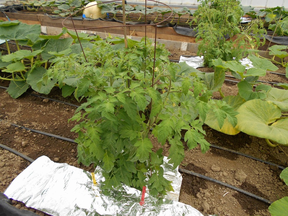 When going through and putting more aluminum foil under the plants this was the plant I ran out on, so it is a little uneven at this point in time. So far, the insect issues have been at a minimum which is great and as a result there has been no need for any sprays on the plants. I also do not expect Tomato Horn worms to be an issue this time of year;-)