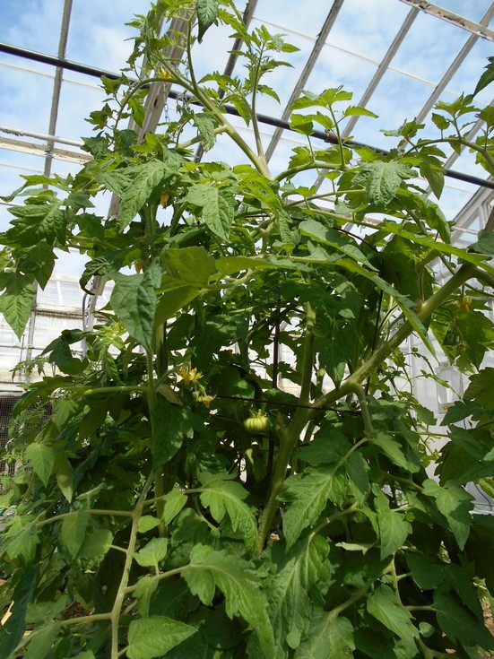 This plant is showing the early lead with a great looking tomato developing that can be seen enjoying a little time in the sun. This plant was pruned and cloned so that the genetics of this specific plant can be preserved and grown in multiple locations. This will allow for potentially superior genetics to be incorporated on a larger scale than just the one plant later this year.