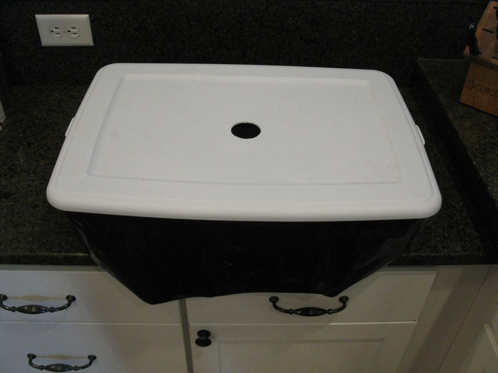 Can't move in without a little remodeling. Rough measurements of tubs are 24x17x6 inches. Used a 2" hole saw to make the plant hole and wrapped the tub with black plastic to minimize sunlight entering tub to reduce algae growth.