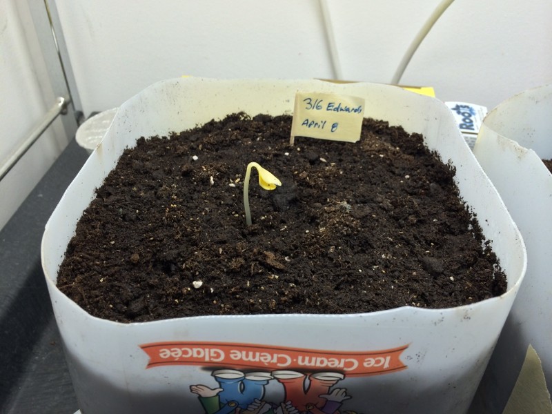 Both melons planted on April 8 are up! This is the 316 Edwards.