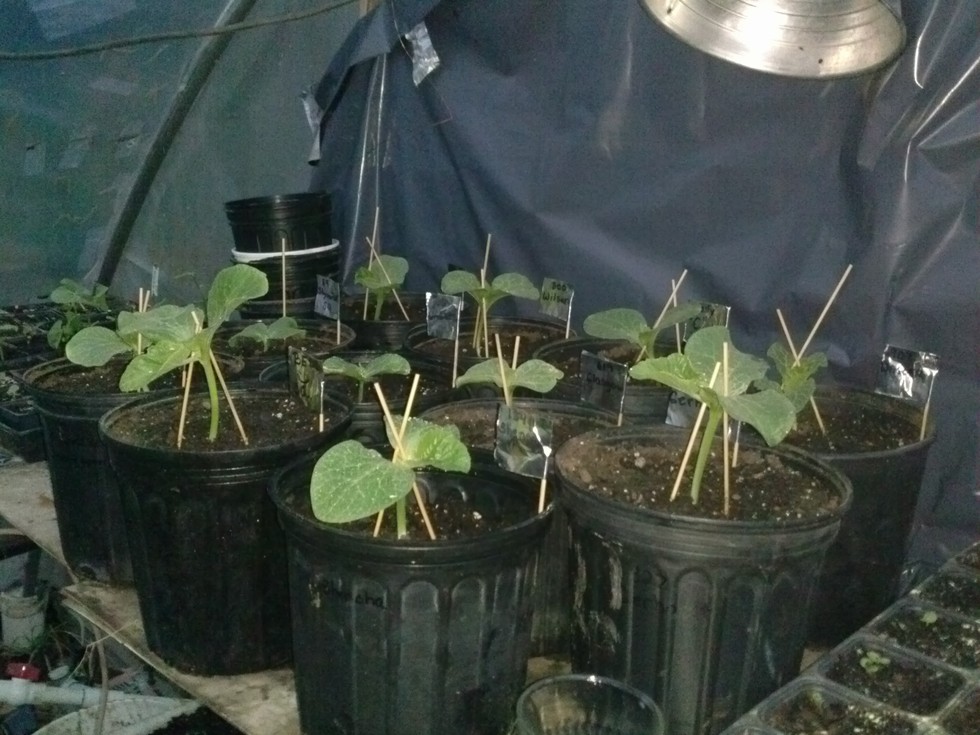 The babies today, 2 days later. My 'little Bell' squash is waaaaay ahead of everyone else. Go girl, I have faith in you Bell!!! Weare gonna whip the blossoms off em!