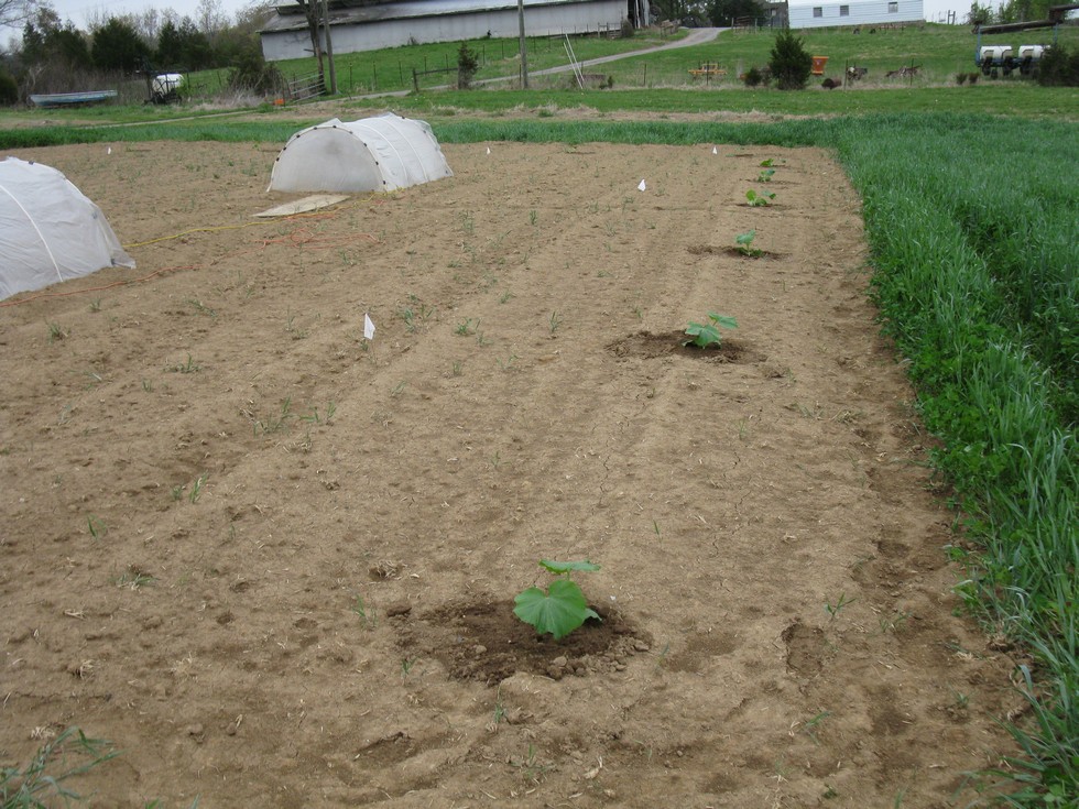 Main patch seeds have nearly all popped. They are now potted and in the brooding chamber. Still waiting on a couple that I would sure like to see pop, 1086* C/P and 282 Scherber. I may start my second 282 in 24 hrs if the first one doesn't pop by then. I have a second 89* Shymanski popped that could take the place of 1086 if it's a no go. Planted several 1051 Cantrell's about 12' apart for bait/trap plants around the fair patch. It occurred to me this morning that I could put zucchini between them to quickly fill in part of the gaps. Seeds will go in pots today. I want a screen of bait plants.