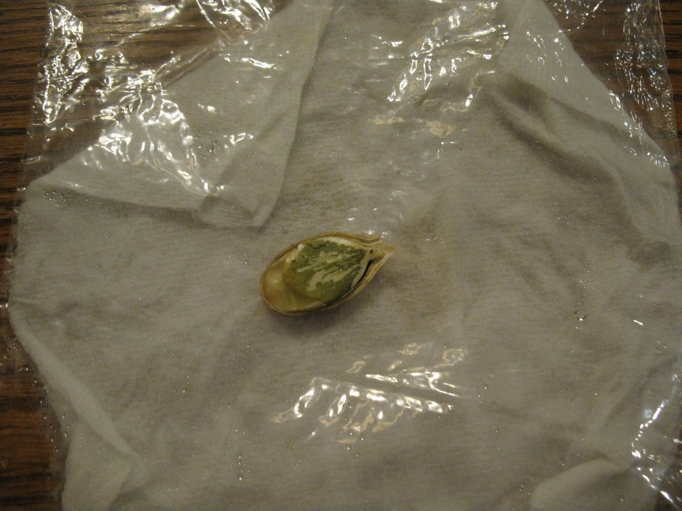 Just as I had hoped. If you look close at the tip in the previous photo it had a dark spec covering the whole thing. Seventeen hours after shucking one side, I'll call it "oyster surgery", there are signs of life. Fitting name since it was left on the half shell. We'll remove her from ICU in a couple hours after a bit more progress in radicle development and get her in her own room. I'll perform another surgery later today on the second sibbling.