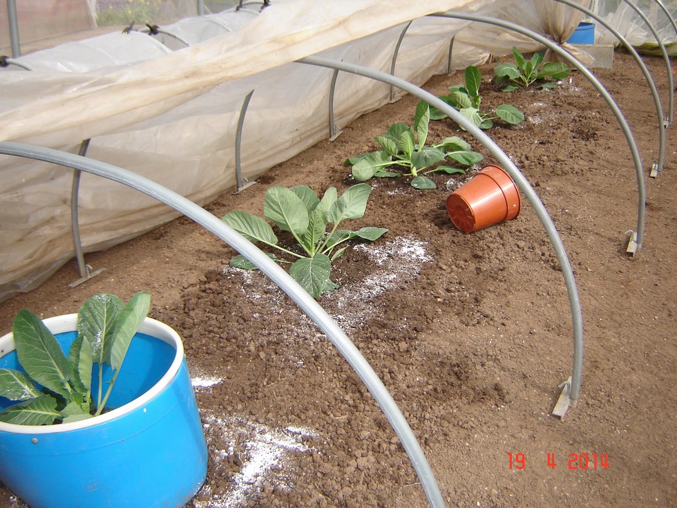 Planted out the first giant Cabbage into my netted tunnel, with cloche protection for a while. Soil temperature was 12c.