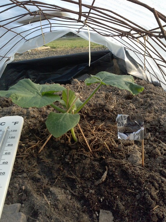 The 1546 Shenoha, grew this over the winter too. I almost have to put her on a continuous drip- this plant sucks up water! It's currently working on holding onto the second set. This one also has 60 square feet of plant, would have 120 square feet tomorrow if I quit cutting off growth! Sets a shit load of pollinators and pumpkins too!