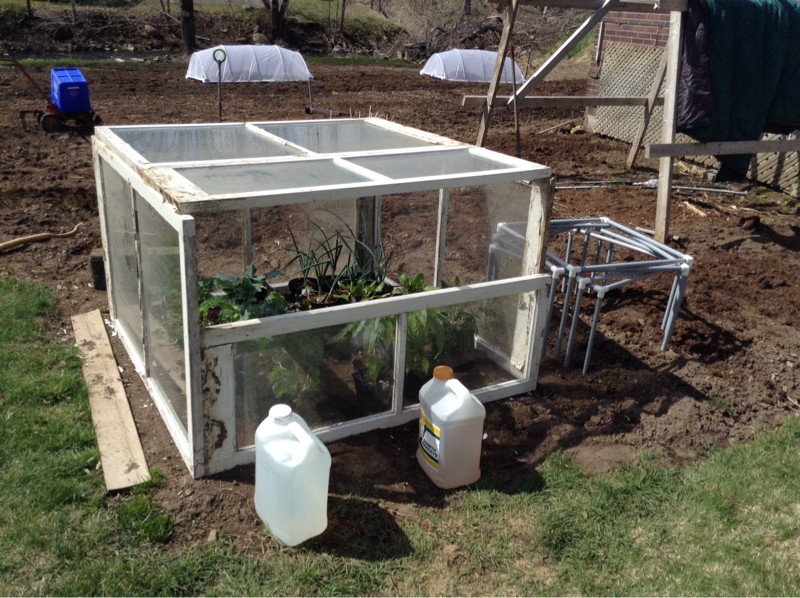 The other plants awaiting their turn and hardening off outside in my new high-tech greenhouse. The frames beside the greenhouse are made of 1/2 inch PVC and will be covered with foil emergency blankets using PVC clips. These will go inside the hoop houses covering the giant pumpkins at night. Just covering with an emergency blanket at night will increase the temp by at least 5 C with no other heat source. Just the soil heat being reflected back. An easy way to keep it warmer at night with no electricity needed.