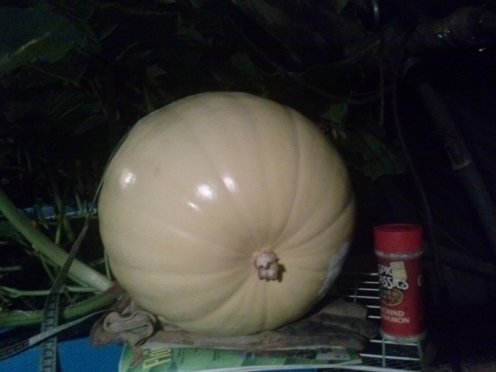 The selfed 710 Wagler- "The Spice Girl". 43.5" circumference, day 27...or 28, can't remember. I love this pumpkin, so perfectly round she is!