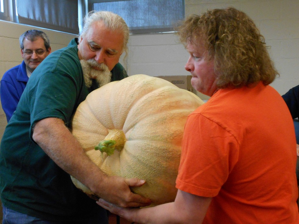 Some weigh-offs use tarps, lifting rings, forklifts, skid-steers, or other machinery to lift the pumpkins at their weigh-offs. At this event we were fortunate to have quite the lifting crew that was so strong they did not even need a lifting tarp!