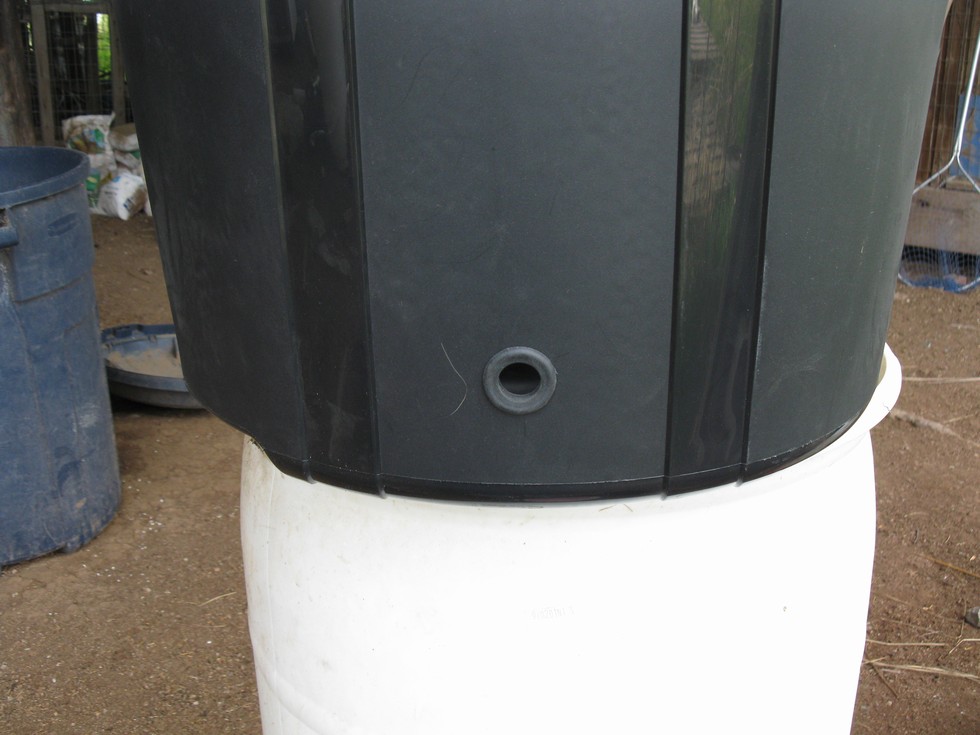 My bucket is a black plastic 32 gallon garbage can from Walmart. About 10 bucks. Cut a 1" hole and inserted a 3/4" grommet. Best ones I've found to work with are at Ace hardware. Slid a piece of 1/2" pvc through grommet and put an elbow with the opening down. This will drain the bucket except for the last inch or so.