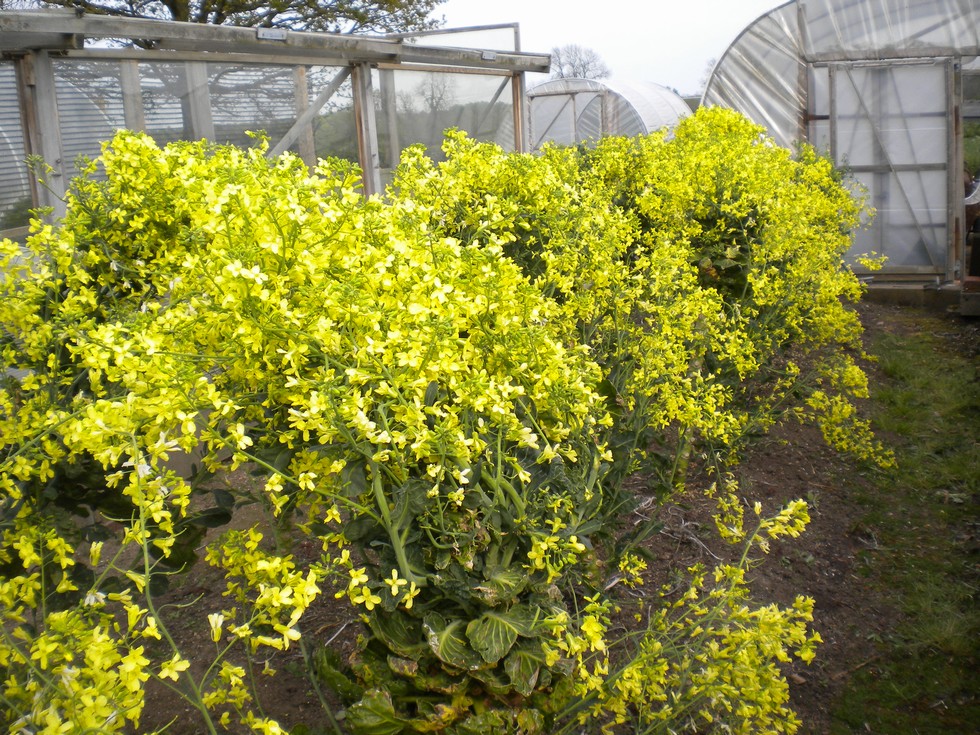 Winters Brussel Sprouts have produced a brilliant display of flowers, will soon have to remove to make space for Marrows. The recent frost was -3c and has browned the Apple blossom so this years crop may be reduced.